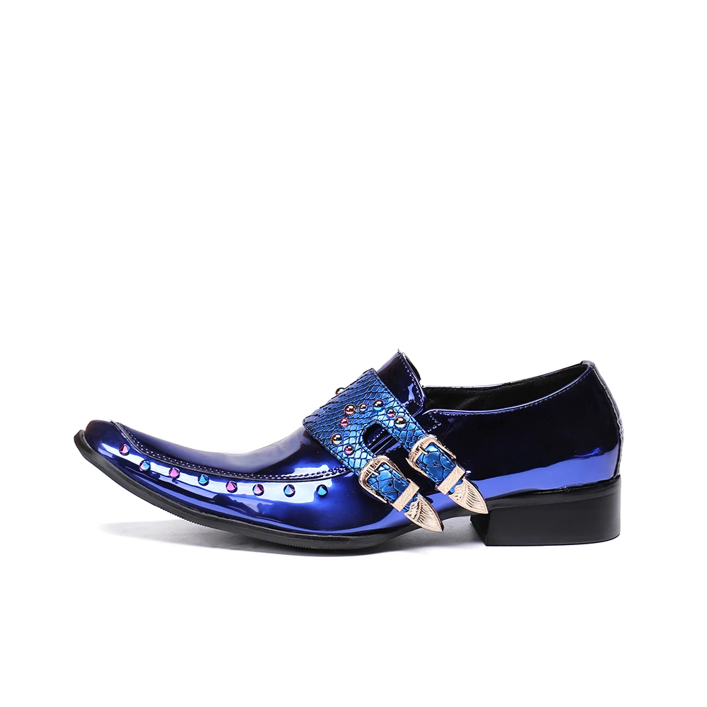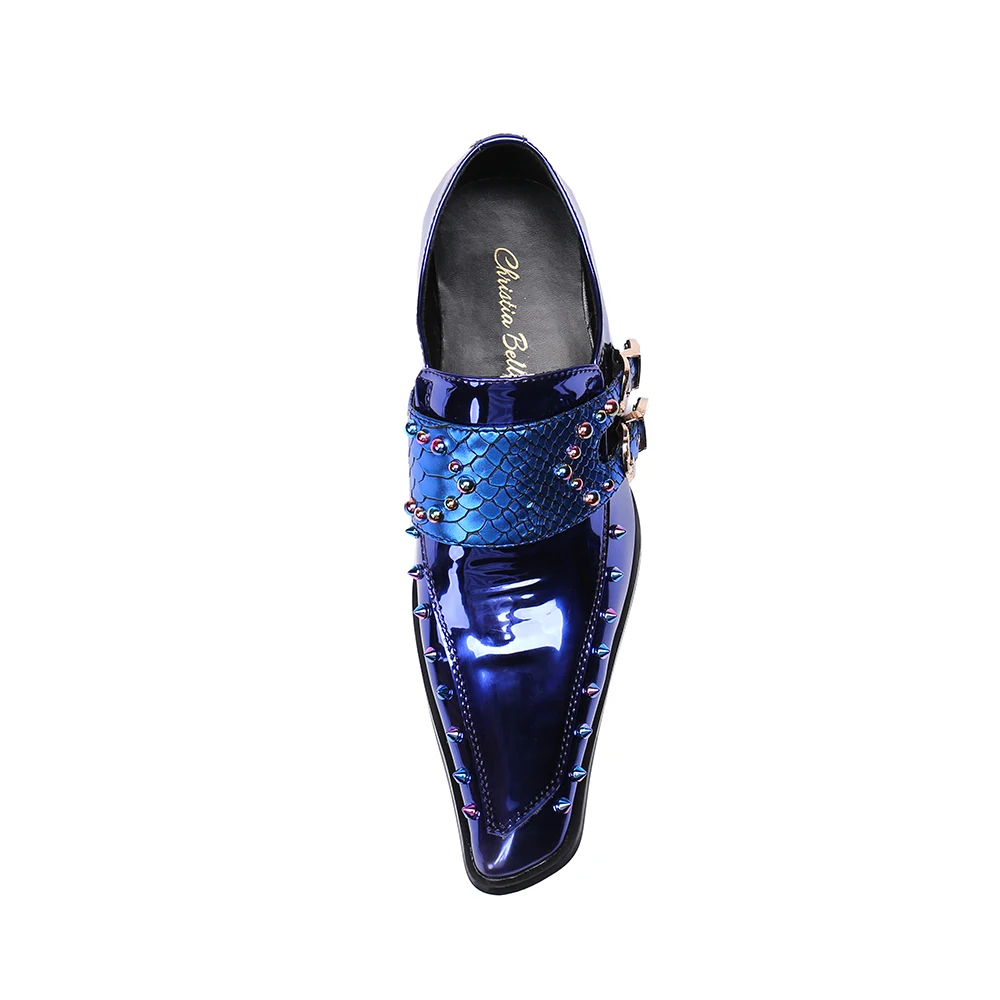 Christia Bella Men Shoes Casual Luxury Genuine Leather Blue Formal Dress Monk Buckle Straps Wedding