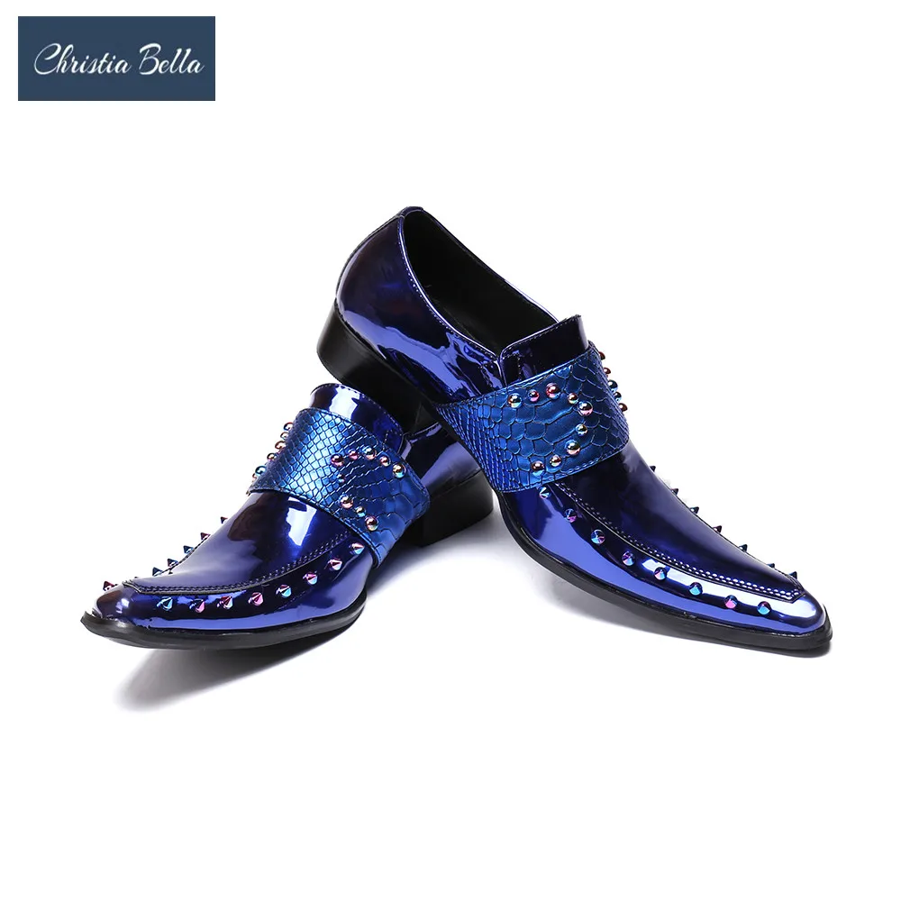 ORIGINAL Christia Bella Men Shoes Casual Luxury Genuine Leather Blue Formal Dress Monk Buckle Straps Wedding