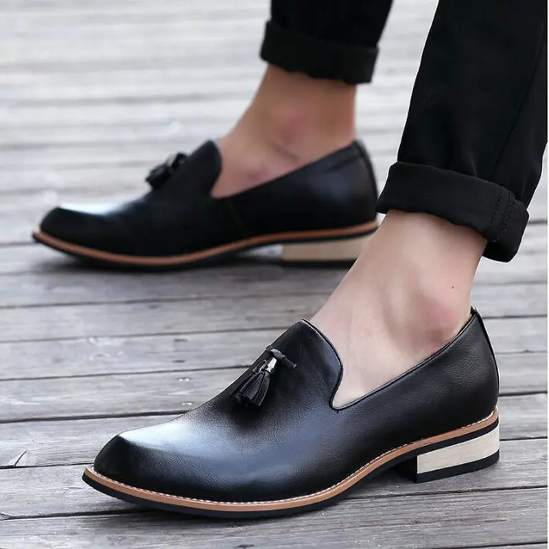 Big Size New Fashion Men Wedding Shoes Leather Oxfords Pointed Toe Shoes Men Tassel Business Formal