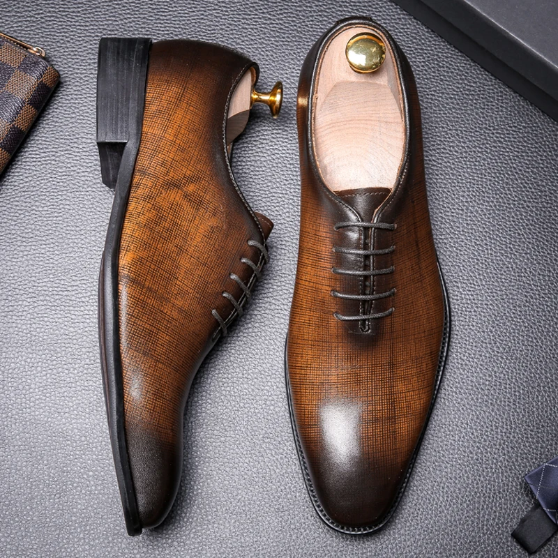 Mens formal shoes leather oxford shoes for men dressing wedding men's brogues office shoes lace up